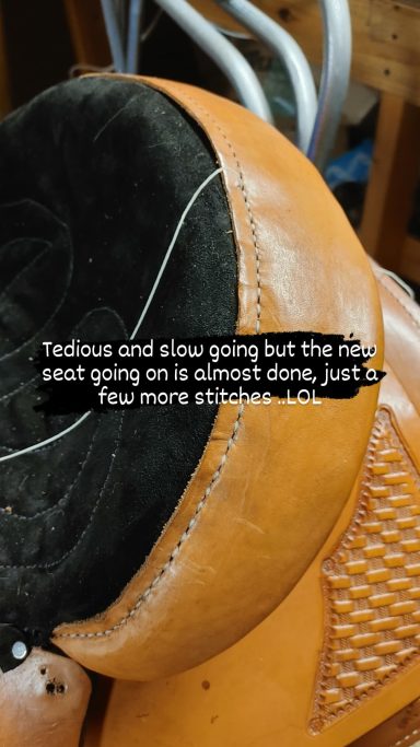 Saddle Seat Restoration ..Mice damage on seat and billets. Old seat removed and new black suede seat with padding replaces the old mice chewed seat
