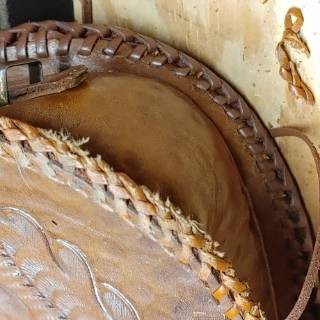 Old Tooled and laced cross body purse.. Needing TLC & restoration due to age and Dry Rot